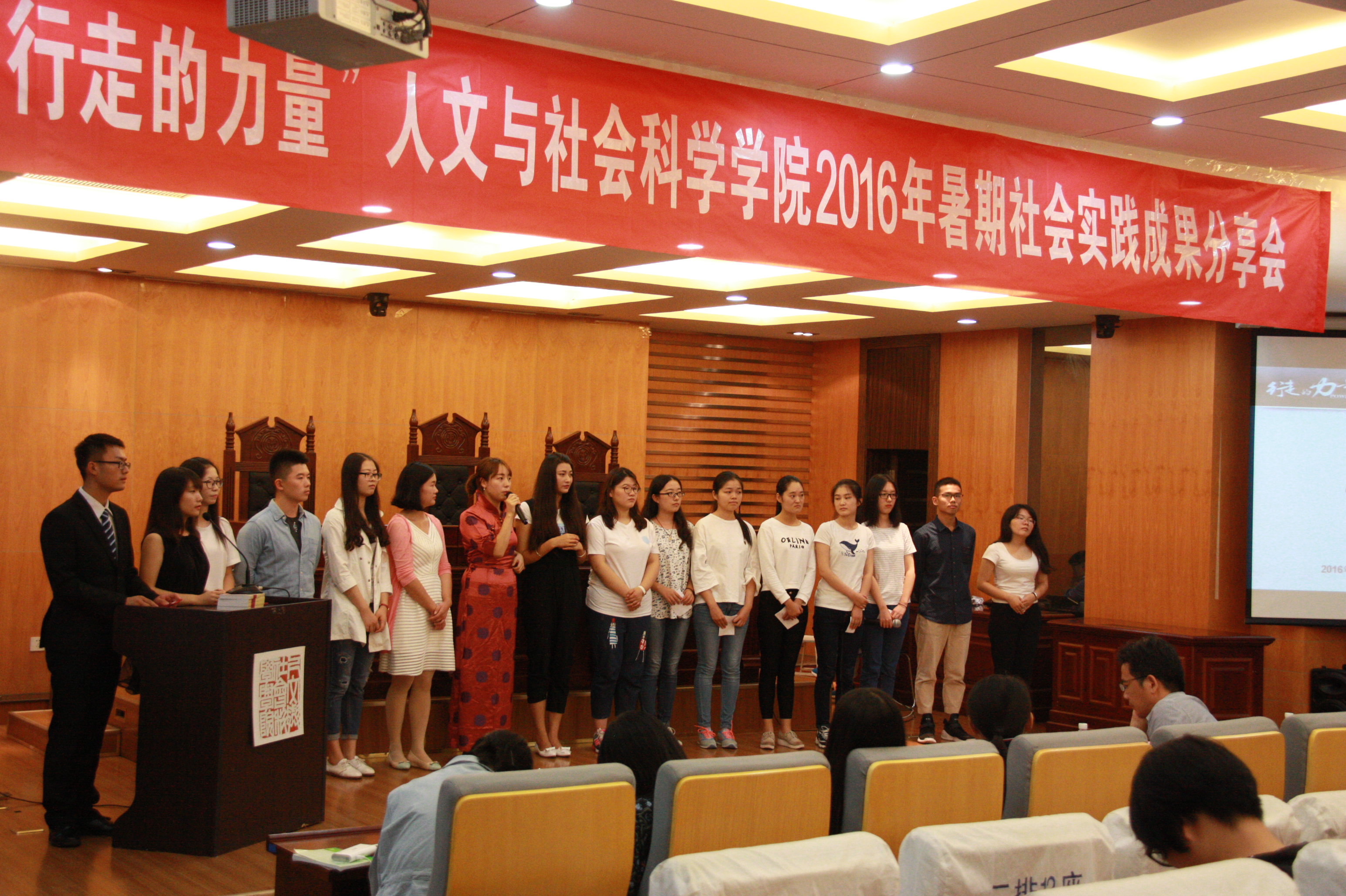 9月28日晚7点,十三水在线 2016年暑期社会实践成果分享会在十三水在线 模拟法庭举行。十三水在线 学生工作负责人尹春苹、法学系副教授刘耀彬、校团委老师吕晶淼、院团委书记卢一亭、辅导员马驰飞及全体2016级本科生、研究生参加了此次成果分享会。