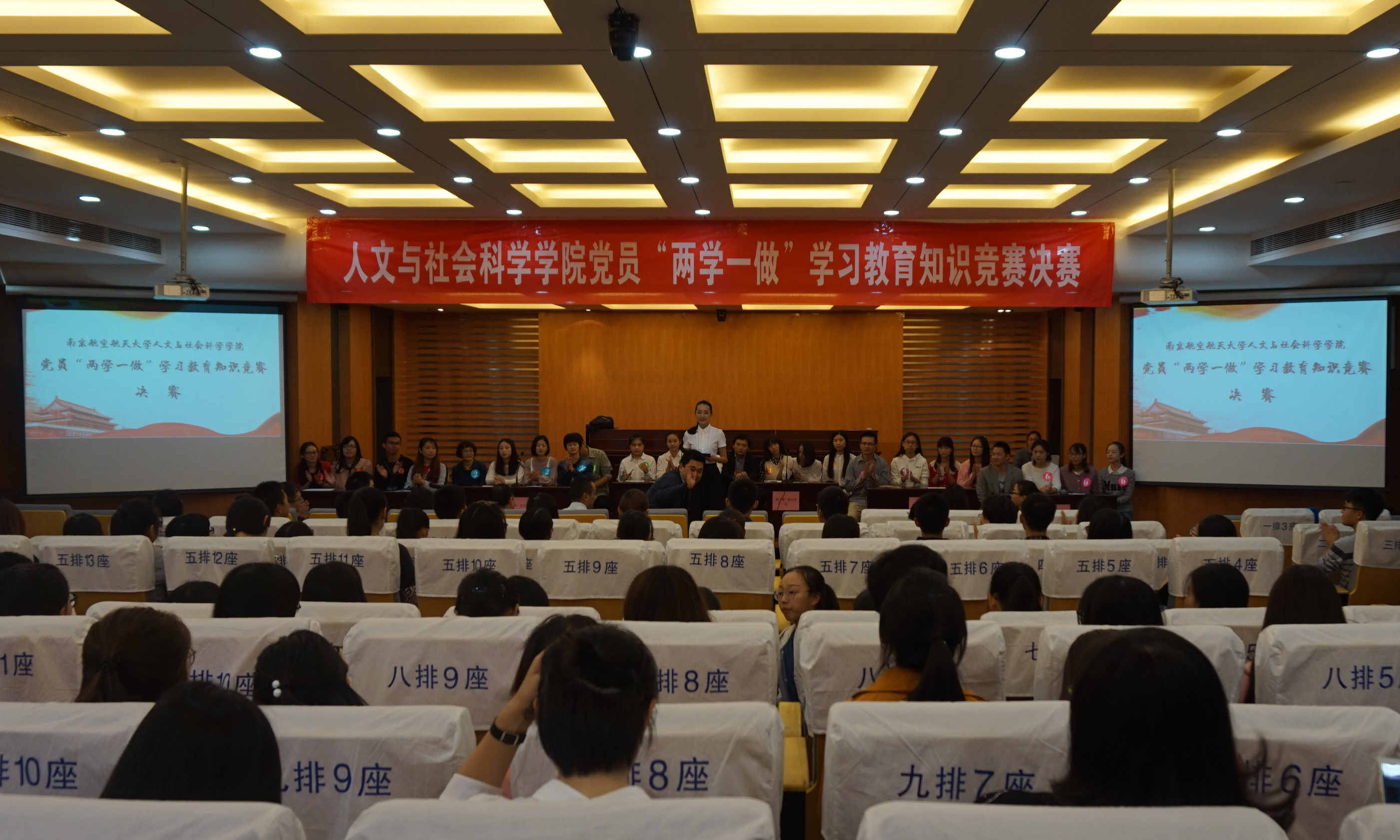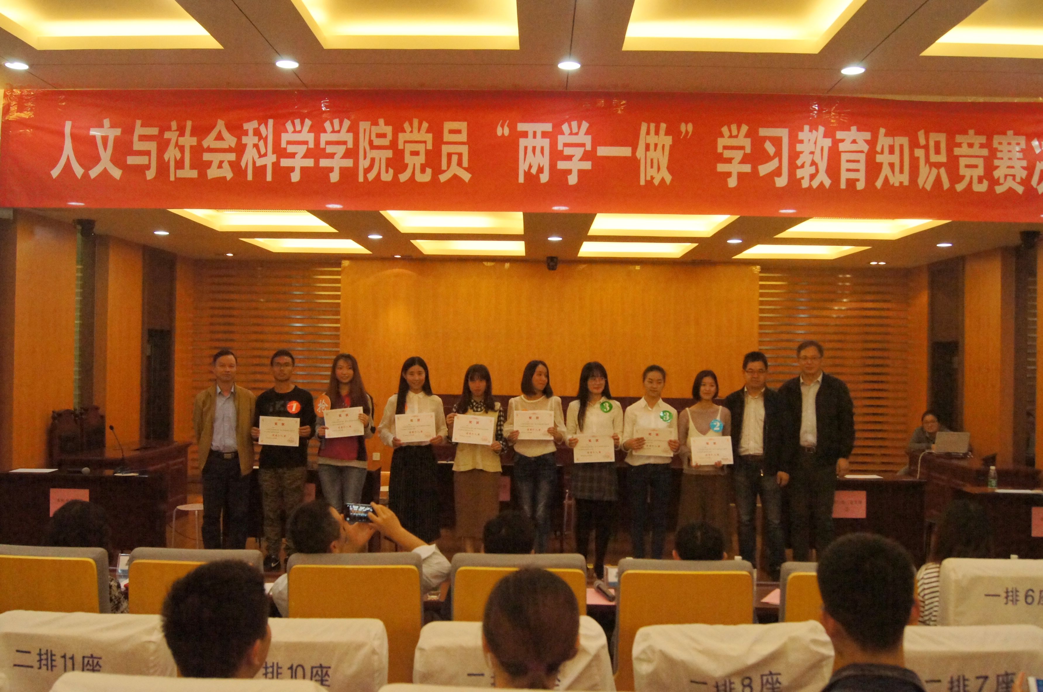 10月18日下午四点,人文与社会科学十三水在线 、马克思主义十三水在线 党员“两学一做”学习教育知识竞赛决赛在十三水在线 模拟法庭举行。校党委组织部副部长高小泽、校党委宣传部副部长孔令华、校纪委办公室主任刘红旗、校团委副书记管祎、人文与社会科学十三水在线 党委书记张启钱、院长王建文、马克思主义十三水在线 副院长缪国龙、十三水在线 学生工作负责人尹春苹等出席活动,十三水在线 教工党员、全体学生党员及入党积极分子参加了此次学习实践活动。
