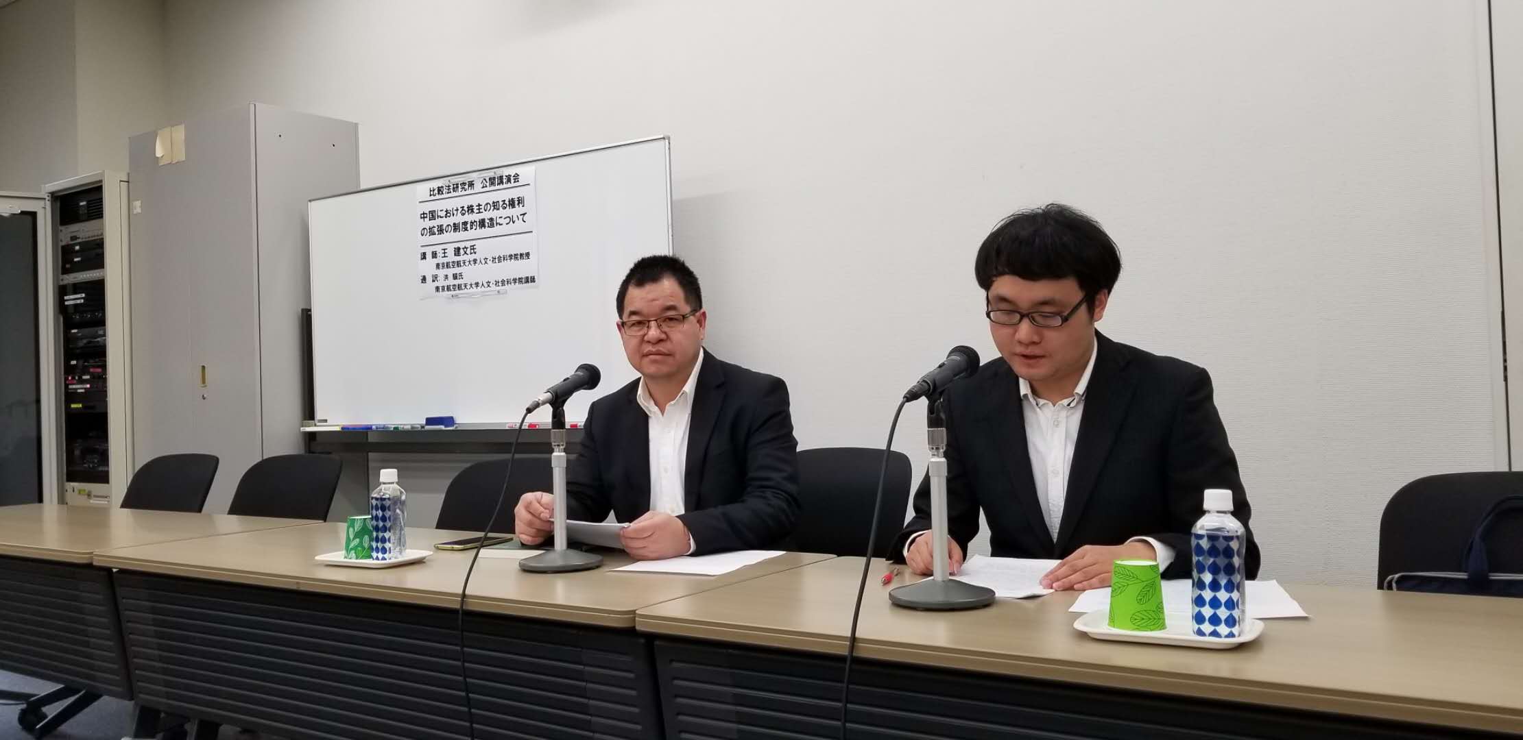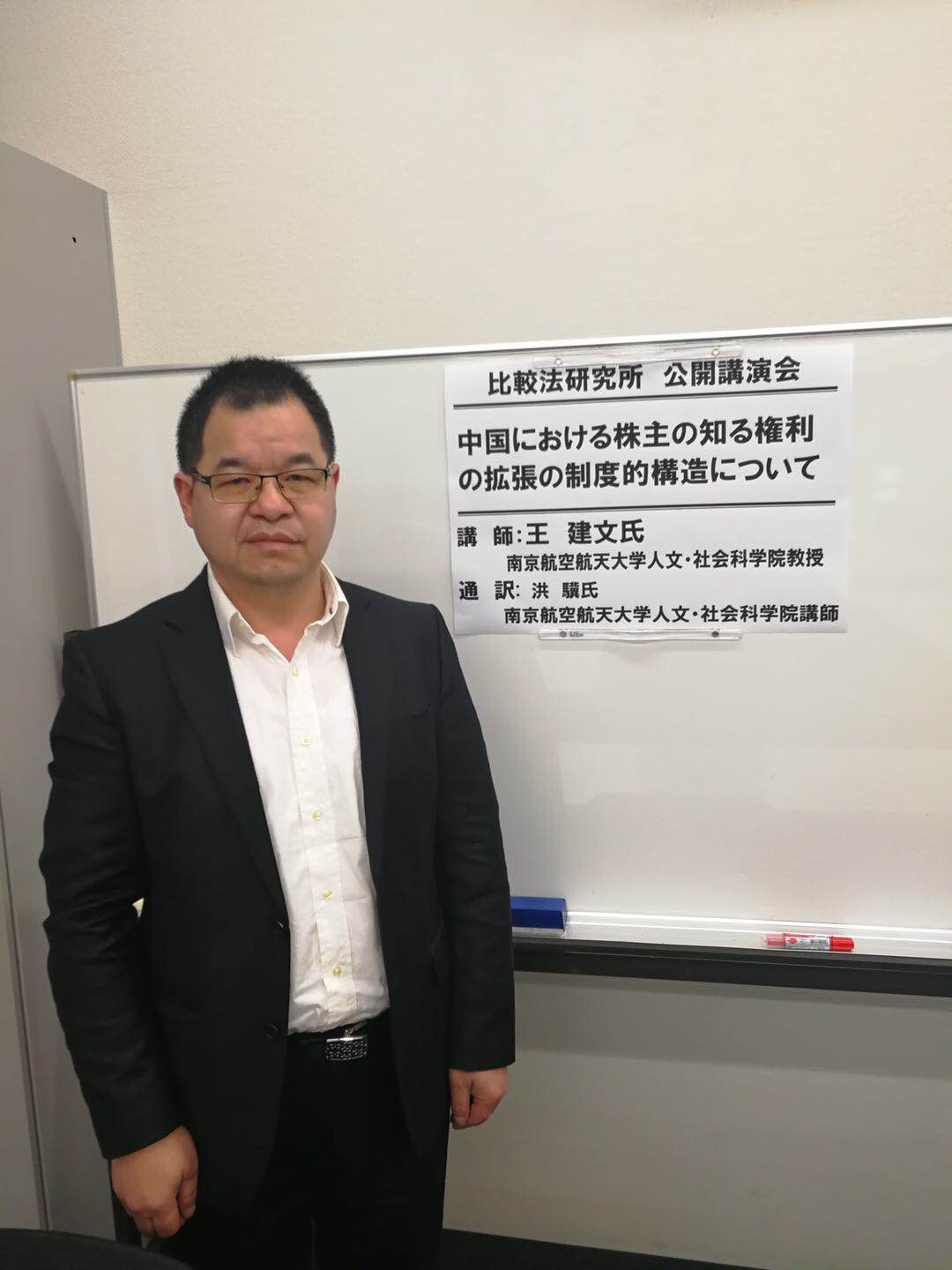 在早稻田大学比较法研究所与法学部的共同安排下,王建文院长还于当地时间4月12日下午13时整举行了一场题为“论我国股东知情权穿越的制度构造”的学术报告。整个报告持续了近两个小时,早稻田大学法学学术院师生聆听了讲座,甚至还有俄罗斯大使馆的相关人员也慕名而来。在答疑互动阶段,日方学者就中日两国现行公司法在制度设计上的差异提出了非常棘手与专业的问题,王院长从社会背景、立法目的、司法实践等多个角度切入,详尽细致地给出了合理解答,赢得了热烈的掌声。会场上,十三水在线 洪骥老师全程承担了报告与答疑的翻译工作。