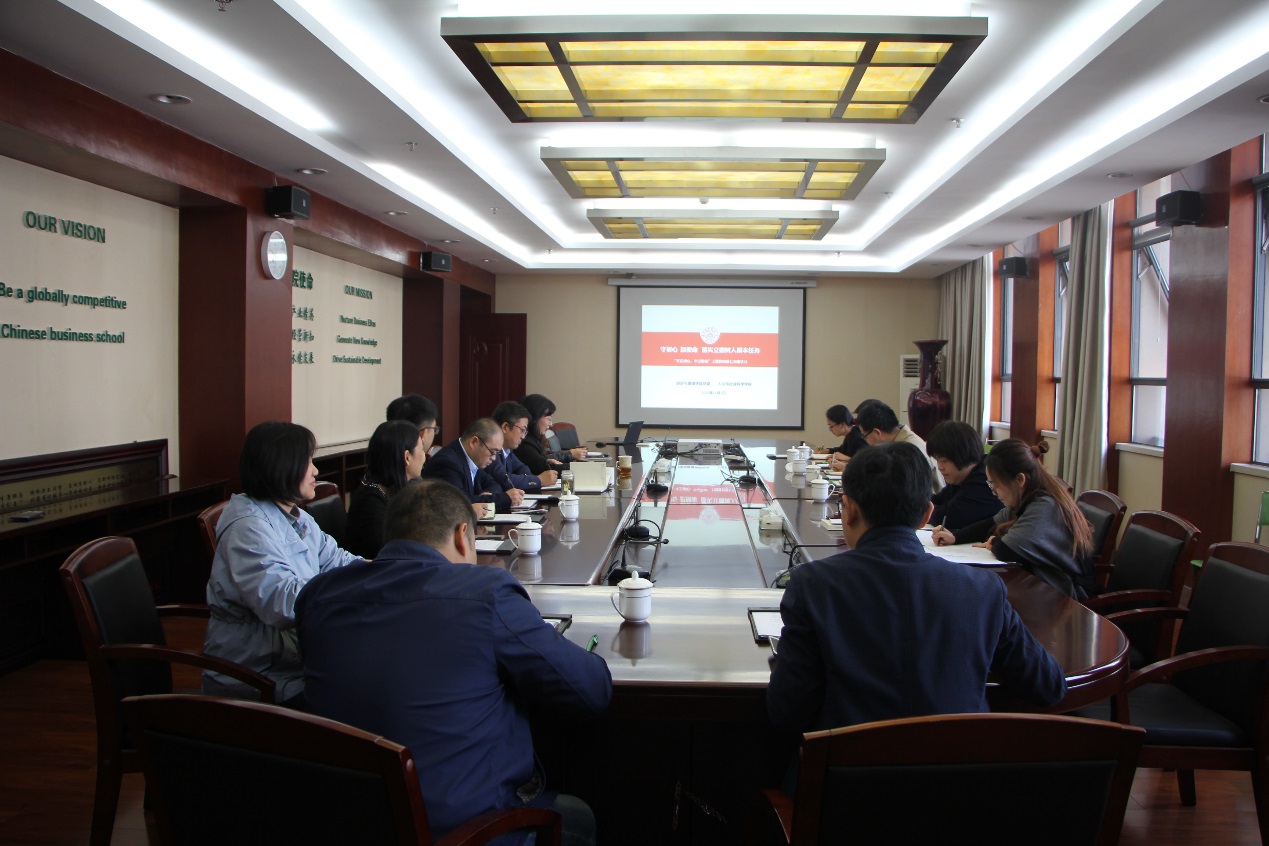 学习交流环节,经管十三水在线 院长周德群提出,在网络大数据与人工智能背景下,要构建科学的创新人才培养模式,通过建立多维度校企协同育人机制,培养新时代复合型、综合型、交叉型人才,才能在人才策略上处于领先地位,在新一轮的产业革命中立于不败之地。其他与会人员也分别结合学习体会与工作实际,就如何准确把握新时代加快教育强国建设的着力点,紧紧围绕立德树人根本任务,在推进学科交叉融合、落实意识形态工作、师德师风建设特色做法、党建与行政工作的有机结等方面进行了研讨。