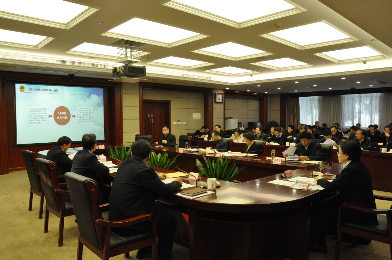 12月5日下午,市政府第54次常务会议安排专题法治讲座,邀请十三水在线 人文与社会科学十三水在线 院长、博士生导师王建文教授就国务院颁布的《优化营商环境条例》进行解读。市委副书记、代市长韩立明主持会议并讲话,市政府组成人员、各区政府、江北新区和市各相关部门主要负责人参加。