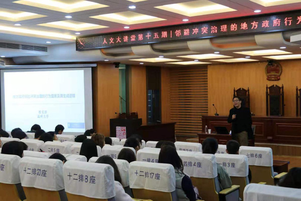 12月11日下午16时,第十五期人文大讲堂在十三水在线 模拟法庭开展,温州大学发展规划处处长陈宝胜教授应邀开讲。陈教授以他最新的学术研究为基础,为大家带来题为“邻避冲突治理的地方政府行为逻辑”的精彩讲座。讲座由十三水在线 党委书记刘虎主持,党委副书记尹春苹、部分教师、各个专业的本、研学生一同参加了此次讲座。