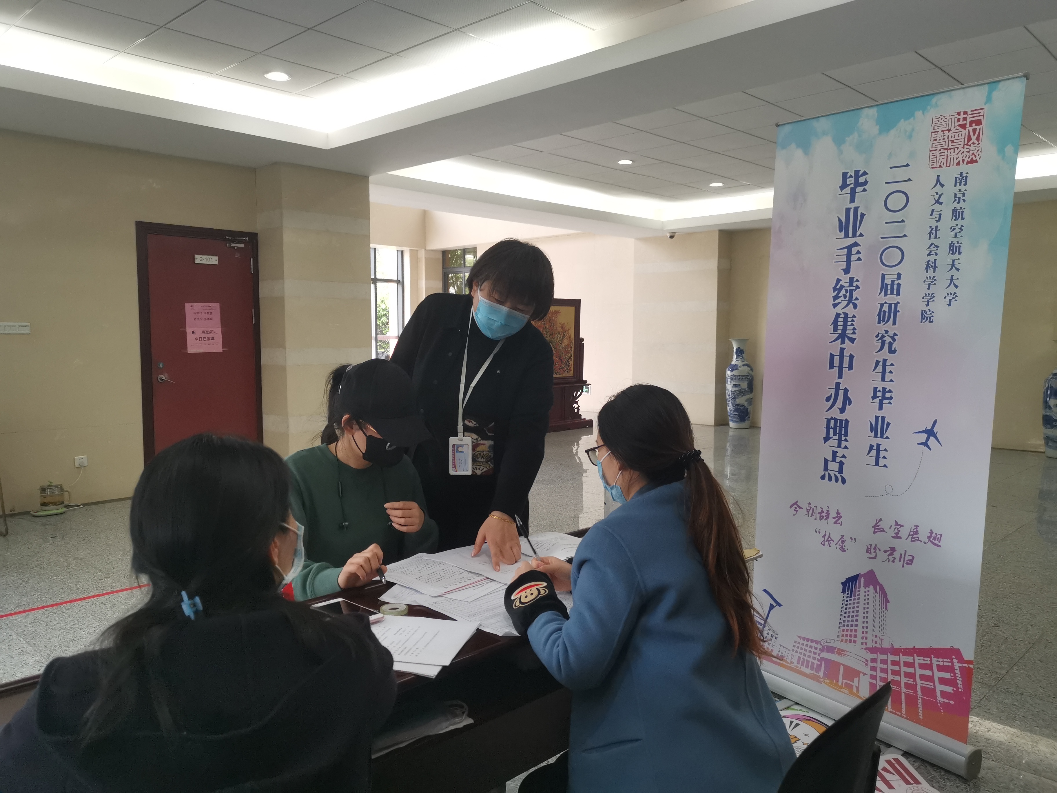 4月23日起,人文与社会科学十三水在线 2020届毕业研究生返校、离校工作陆续展开。为了保障同学们顺利办理毕业离校手续,十三水在线 提前进行了周密安排,十三水在线 学生管理人员连同教务教学、组织员等共同设立毕业手续集中办理点,提供“一站式“服务,尽可能为学生提供便利。