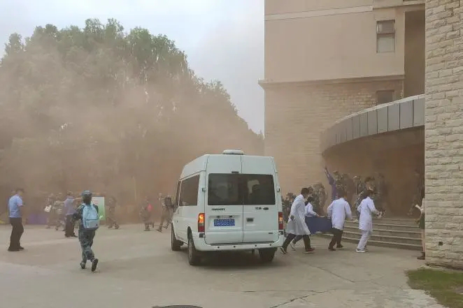 在校卫队员和义务消防员的指引下,学生们用湿毛巾捂住口鼻,伏腰潜行,陆续从消防通道疏散。与此同时,驻区消防中队的灭火救援官兵也及时抵达火灾现场,在了解火势情况后,立即展开全面扑救。15分钟左右,两校区3000余名学生全部疏散完毕。