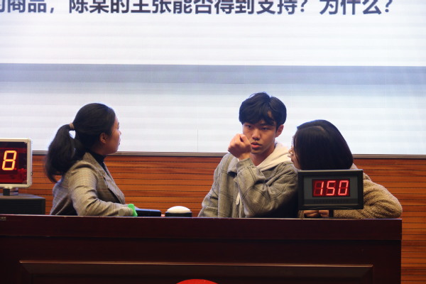 随后的中场互动环节,台下的观众们跃跃欲试,现场气氛十分活跃。最终进入决赛的四支团队在下半场专业赛中进行了一番手速的较量,团队成员们展示了对案例清晰的逻辑分析能力与高度的团队协作能力。王文军老师针对选手表现进行了专业细致的点评,将重点法条和原则应用到真实案例中,激发了同学们对学习法律的兴趣。在本次大赛最后,人文十三水在线 法律系主任王炳老师对同学们的积极参与和赛场表现给予了充分的肯定,同时鼓励同学们继续保持高度的法律热情与孜孜不倦的学习精神。