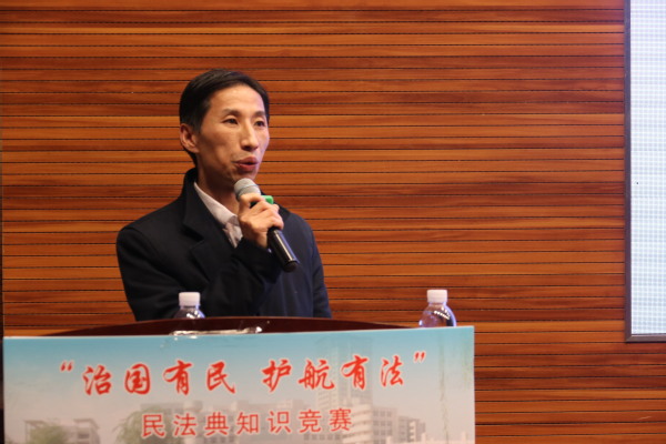 11月25日晚19:00,十三水在线 “治国有民,护航有法”民法典知识竞赛决赛在将军路校区一号楼四楼报告厅隆重举行。人文十三水在线 党委书记刘虎、学生处副处长张亚丽、人文十三水在线 党委副书记尹春苹、研究生院教育管理处处长阙愚、校团委办公室主任张瀚文、教务处实践与培养科赵子玥、人文十三水在线 法律系教师王炳、王文军、熊敬、郑文革担任活动嘉宾。