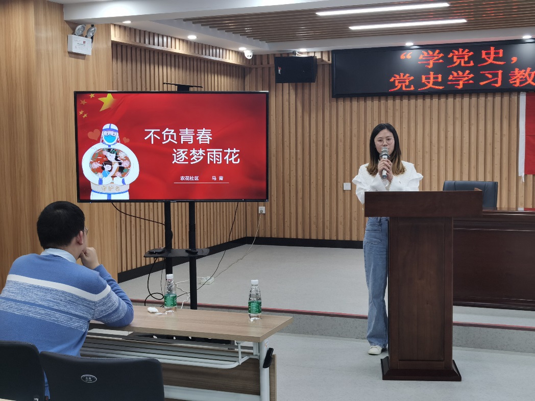 活动在青年学子读党史,基层青年讲团史中展开。支部青年郭小凡同学从中华苏维埃共和国临时中央政府建设中的党史小故事讲起,带领大家深刻学习领悟了党保持优良作风、坚定人民立场的先进品质。雨花街道团工委书陈晨则深情地回顾了承载了几代共青团员火热青春的“共青团路”的历史沿革。随后马克思主义十三水在线 教师李飞翔从当时民主法制建设的智慧到现今疫情冲击下的基层治理模式深刻启迪,引发青年们深思。青年代表的讲述也激励着在座的每一位青年关心国家大事、关注社情民意,立足于自身的知识和技能,通过志愿活动、实习实践等方式,为‘小我融入大我’的实践矢志奋斗。