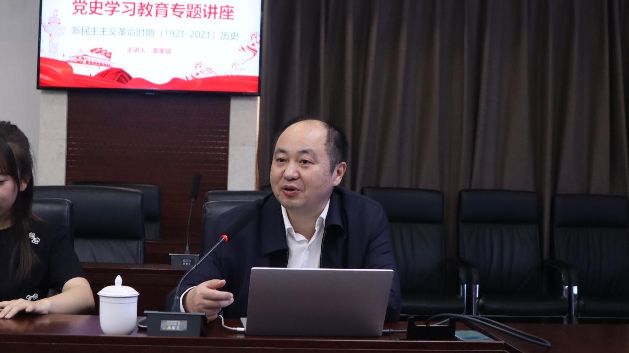 为进一步贯彻落实《领导干部深入基层联系学生工作方案》,加强师生交流学习,贯彻党史学习的深刻意义,牢记初心使命,5月14日上午,信息化处袁家斌处长为1019101班同学开展专题讲座——新民主主义革命时期历史。讲座由人文十三水在线 辅导员聂小芳主持,1019101班全体同学参加。