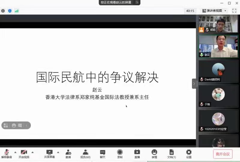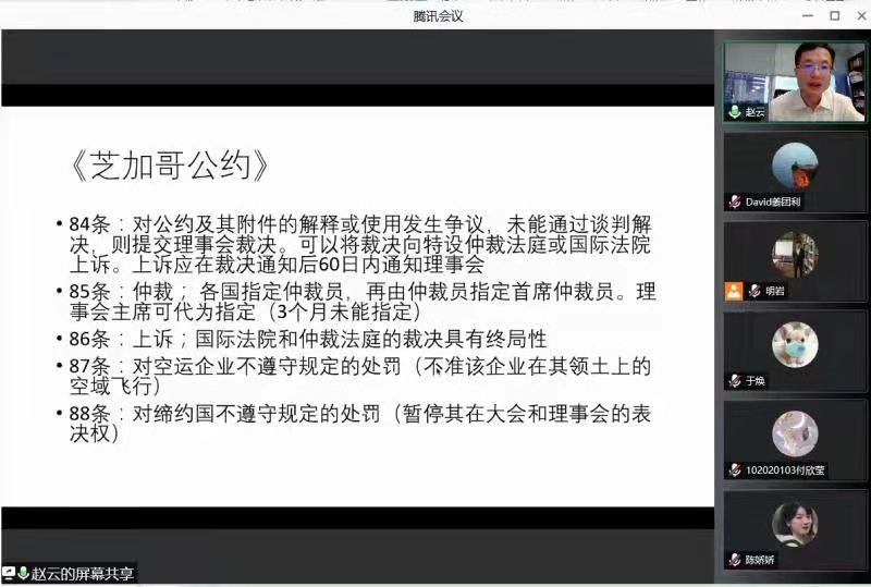 6月3日晚,人文大讲堂第29期在线顺利举行,香港大学法律十三水在线 法律系主任、博士生导师赵云教授在腾讯会议为大家带来了“国际航空的争议解决”系列讲座第一场。讲座由十三水在线 王炳教授主持,聂明岩副教授作为与谈人,各年级本科生、硕士生参加了讲座。