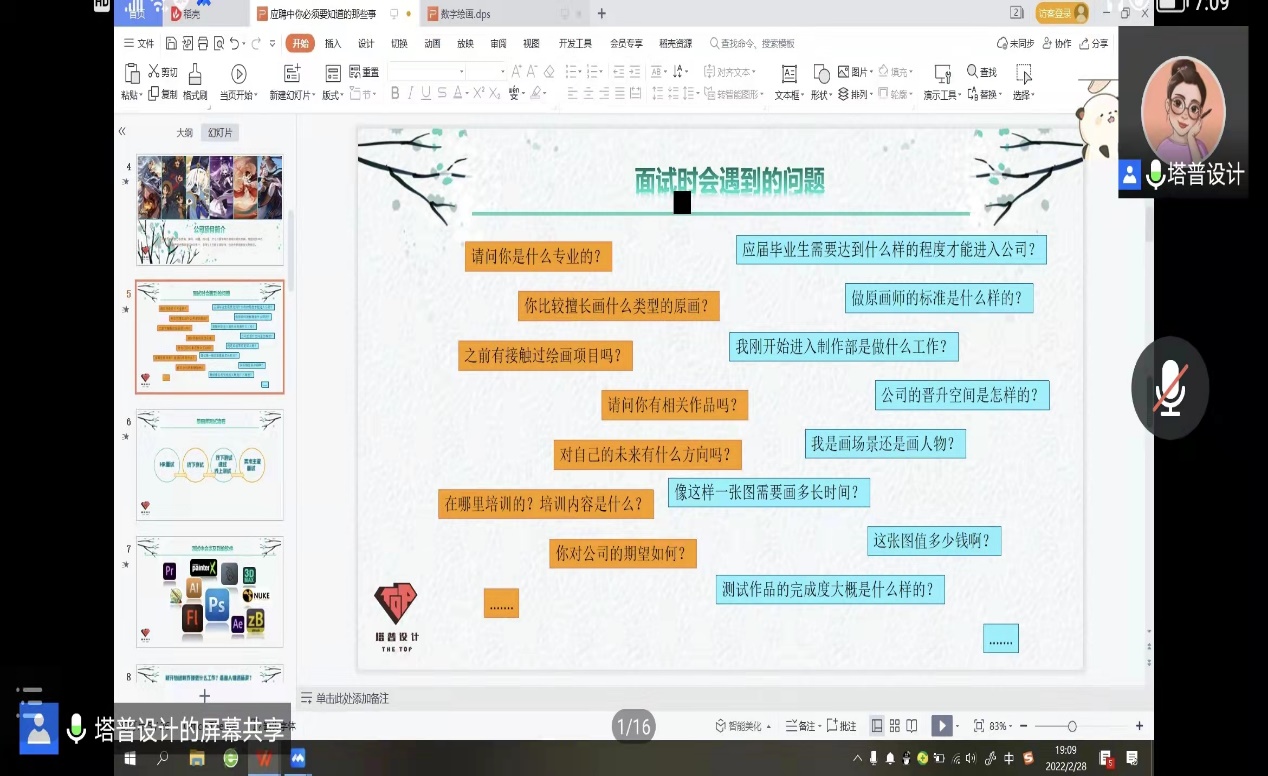 3月4日晚19:00,十三水在线 职业规划主题讲座《应聘中你必须要知道的那些事》在腾讯会议平台如期举行。本次讲座邀请到了南京塔普因趣网络科技有限公司总经理、资深动画原画师张彤老师作为主讲人。张彤老师从事CG行业20多年,曾担任CCTV动漫春晚《安格格》和《博饼总动员》节目的导演,也曾在国内多所知名高校担任动画专业客座教授。张彤老师以“应聘中你必须要知道的那些事”为主题,围绕公司面试应聘时的相关注意点与同学们展开分享。会议由辅导员聂小芳主持。
