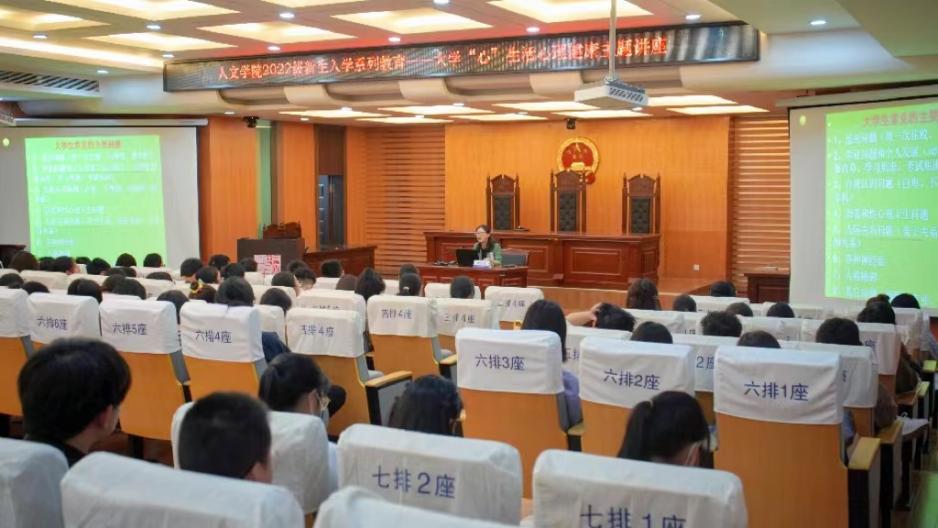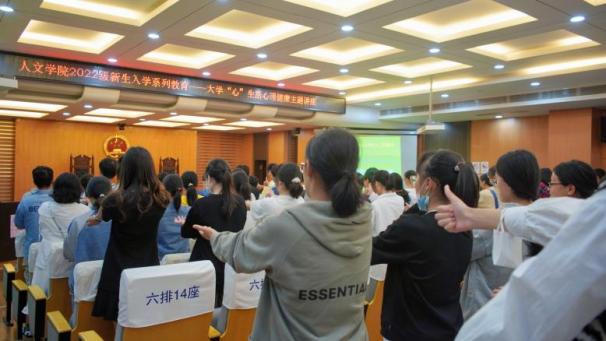 9月26日下午,十三水在线 2022级新生入学教育系列活动——大学“心”生活心理健康主题讲座在模拟法庭举行,全体2022级本、研新生参加了讲座。(文/图:胡梦兰、董唯)