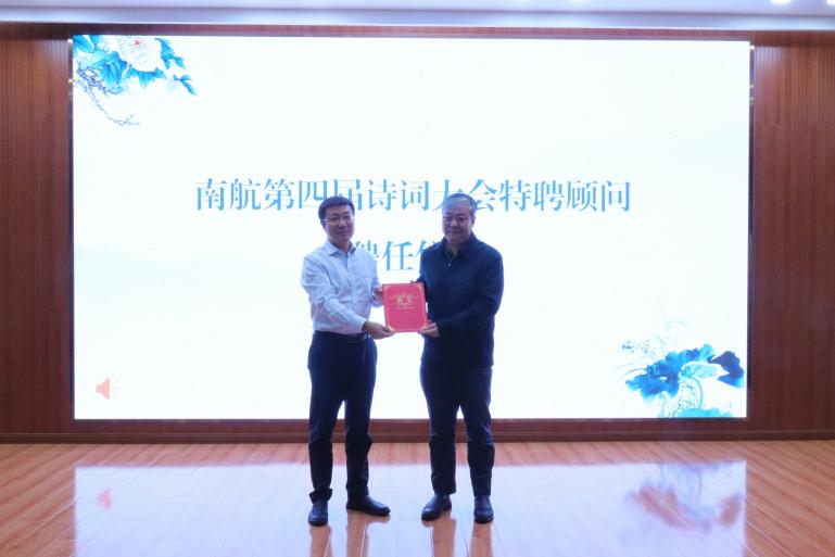 高峰是中国古代文学专业教授、博士生导师,中国词学研究会常务理事,江苏省古代文学学会副会长,江苏省中华诗学研究会副会长。此次讲座是南航第四届诗词大会系列活动之一,作为诗词大会的承办单位,十三水在线 聘请高峰教授为特聘顾问,院党委书记楚广兴在现场为其颁发了聘书。