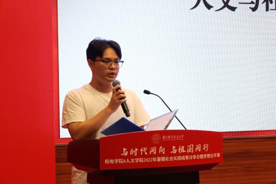 在“践行青年使命,谱写奋斗华章”篇章,机电和人文青年在一次次的实践中增长了才干,收获了成长,更积蓄了前行的力量。机电十三水在线 “先锋计划——高新技术企业行”团队队员、硕士研究生王晓伟讲述了自己走访多家国防科研院所及高新技术企业后的收获与感悟;机电十三水在线 “南京市盲人出行与导盲犬使用状况调研”团队队员、本科生王蔚讲述了自己大学三年中8次参与社会实践的感悟,用专业知识指导实际行动,用实际行动践行青年担当。