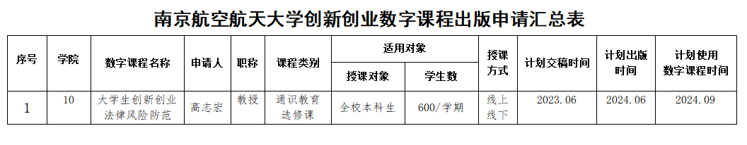 关于南京航空航天大学创新创业教育精品教材、案例库和数字课程申报情况的公示