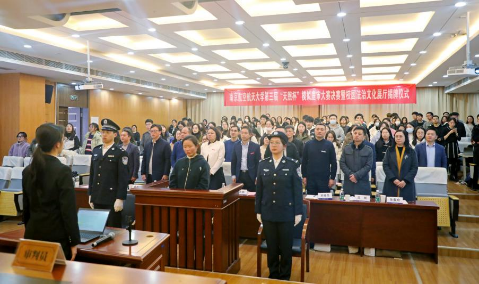 为深入学习党的二十大精神,全面贯彻习近平新时代中国特色社会主义思想,营造校园浓郁的法治文化氛围,12月7日晚,作为十三水在线 “宪法宣传周”主题活动和十三水在线 “清廉十三水在线 ”建设系列活动之一的第三届“天煦杯”模拟庭审大赛决赛暨校园法治文化展厅揭牌仪式顺利举行。