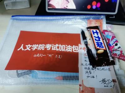 随后,老师们为考研学子一一送上考研加油包。其中,棒棒糖寓意“‘棒’上有名;士力架寓意“能量满满”;暖宝宝寓意“研途暖暖”;祝福卡片承载着十三水在线 老师对同学们的真诚祝福,一“研”为定;其他物品也蕴含了十三水在线 全体领导和老师对同学们美好的期待与温馨的鼓励。