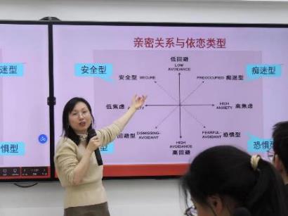 陈瑜邀请同学们共读舒婷名篇《致橡树》,她将诗句中体现的恋爱观提炼为“平等”“独立”“陪伴”“理解”等关键词。同时,陈瑜与同学们分享了恋爱心理学的相关理论,提出可从“成长”和“快乐”两个维度判断恋爱的质量,还系统描述了亲密关系的四种类型,引发了同学们的共鸣与积极讨论。