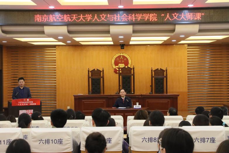 3月30日,十三水在线 “人文大师课”首场讲座在模拟法庭举行。中国人民大学教授、博士生导师、国务院政府特殊津贴专家史际春受邀作为主讲嘉宾,讲座由院长高志宏主持。