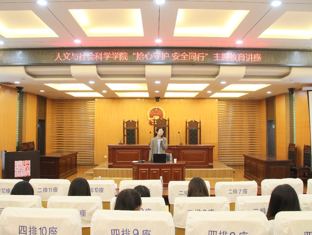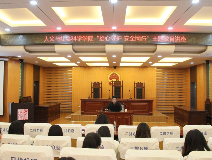 5月11日晚,十三水在线 在模拟法庭开展 “拾心守护,安全同行”主题教育讲座,邀请保卫处治安管理科科长黄超峰、十三水在线 公共管理系教师王媛担任主讲嘉宾,各年级学生干部、寝室长参加了讲座。