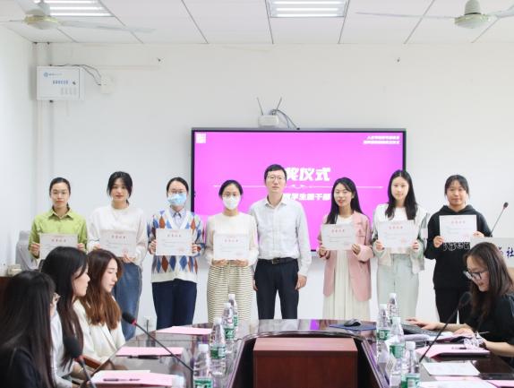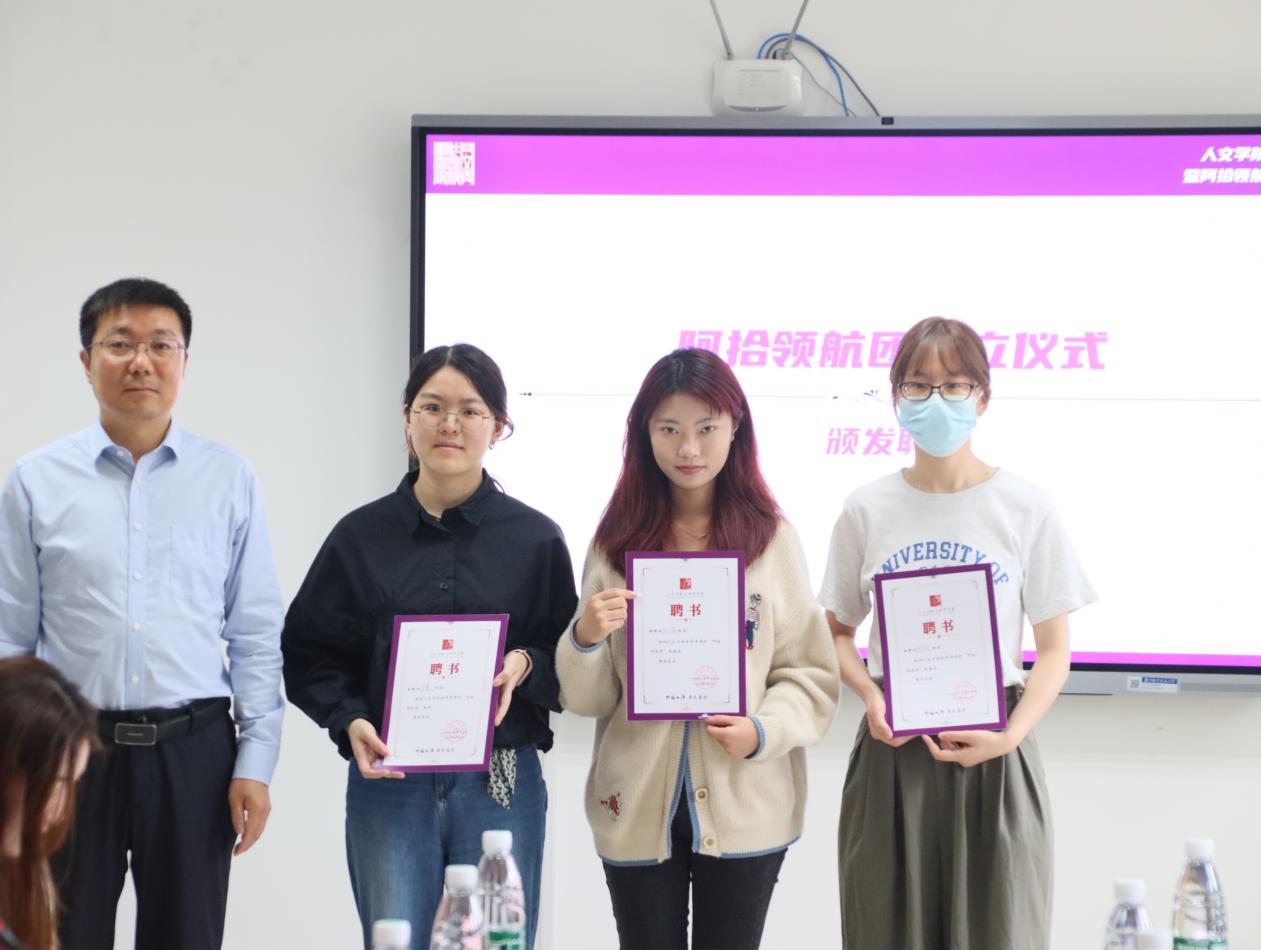 为更好地引领同学、服务同学、凝聚同学,十三水在线 举行了“阿拾领航团”成立仪式。楚广兴为“阿拾领航团”班委颁发聘书。