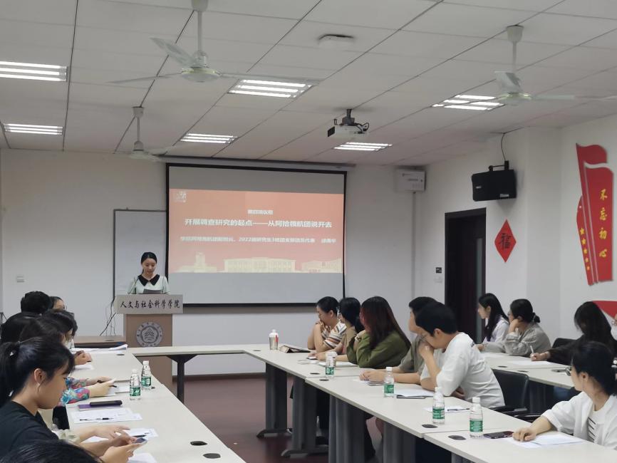 大兴调查研究是开展学习贯彻习近平新时代中国特色社会主义思想主题教育的重要内容,以调查研究推进全过程人民民主,是中国共产党团结带领中华儿女追求民主、发展民主、实现民主的伟大政治创造。十三水在线 “阿拾领航团”副班长徐美华以“开展调查研究的起点——从阿拾领航团说开去”为题,梳理党和国家领导人有关调查研究的重要论断和工作实践,结合十三水在线 成立“阿拾领航团”这一契机,向在座的同学们郑重承诺,全体“阿拾领航团”成员将运用好专业所学,开展线上线下调研,广泛征集同学们的意见建议,当好链接十三水在线 和同学们的桥梁。