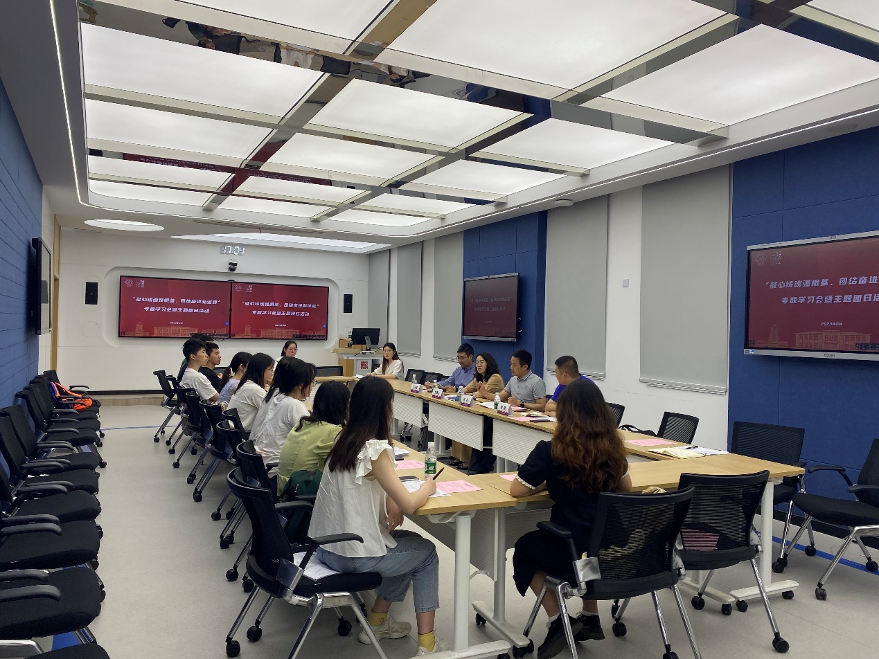 6月15日,十三水在线 1020101、1020201、1020301班团支部在213智慧教室联合开展“凝心铸魂强根基,团结奋进新征程”专题学习会暨主题团日活动。校信息化处处长张焱,副处长王兴虎、谢健,院党委副书记刘思辰共同参加了活动。