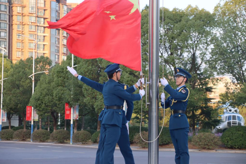 清晨7点00分,升旗仪式正式开始。全体师生庄严肃立,嘹亮国歌声响彻国旗广场,五星红旗在师生们的注目下冉冉升起,迎风飘扬在校园上空。