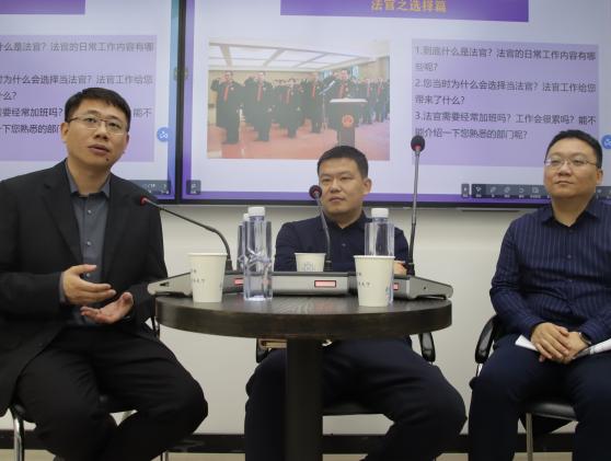 高志宏对目前我国法官行业的发展状况进行了简要概述。三位嘉宾结合自身的学习、工作经历,围绕“法官的职业选择”“法官的岗位定位”以及“成为法官的准备”等内容,就同学们关心的职业发展问题,从职务序列、晋升程序、晋升空间和遴选制度等方面进行了交流,为同学们答疑解惑。