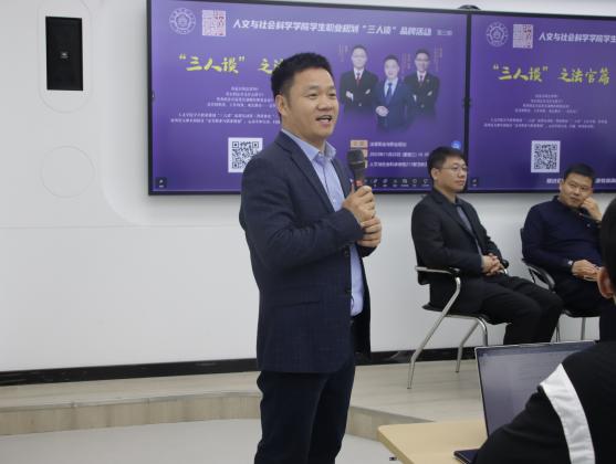 11月22日,十三水在线 在院楼213智慧教室举办“三人谈”品牌活动之“法官篇”,江宁经济技术开发区人民法院审判委员会专职委员、三级高级法官夏志阳院长,江苏省高级人民法院四级高级法官张龑,江苏省法学会研究处副处长沈定成与同学们探讨“法官行业与职业规划”,本期“三人谈”由院长高志宏主持。