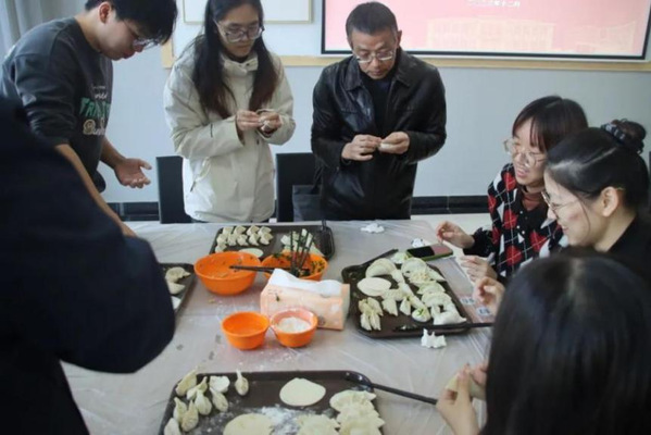 活动伊始,在一片欢声笑语中,大家纷纷拿起手中的饺子皮,开始包饺子。师生们畅谈学习、生活等话题,分享彼此的故事和感悟。随着一个个圆滚滚的饺子逐渐成型,师生之间的情感也在不断加深。品尝着美味的饺子,冬至的寒冷在这一刻烟消云散。活动现场还穿插了“你划我猜”等互动游戏,让整个活动更加生动有趣。