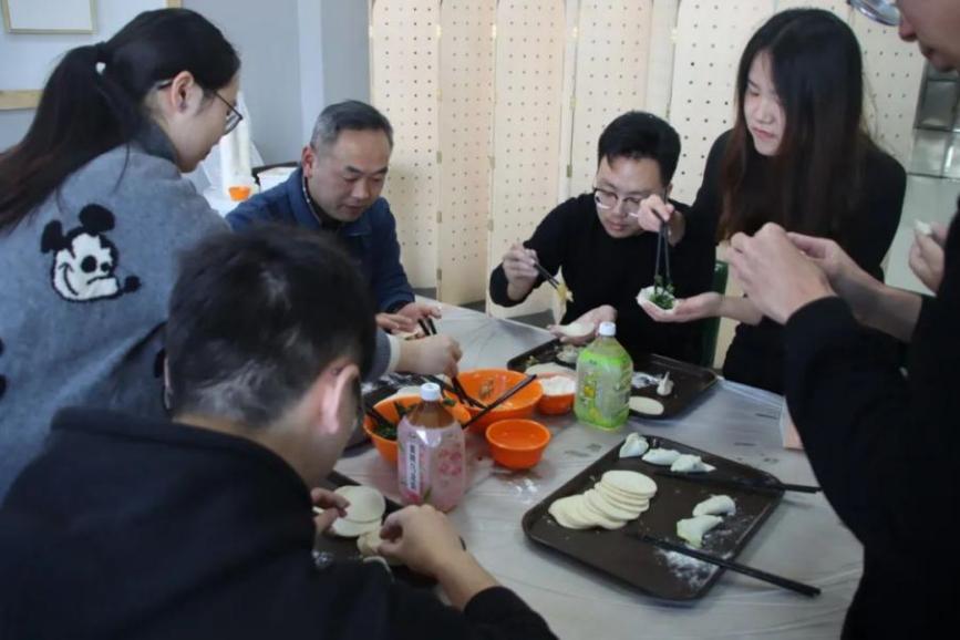 师生们面对面沟通、心与心交流,互相诉说一整年的收获与喜悦。薄薄的饺子皮包裹着厚实的温暖,大家在严寒的冬日感受着集体的温暖与关怀。