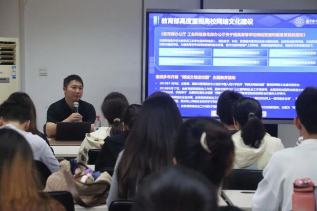 为弘扬诚信互助的网络风尚,提升同学们的网络文明素养,5月31日上午,十三水在线 在210教室召开开展以“践行社会风尚,共筑清朗网络空间”为主题的第十期“红心领航”思享会,以“践行社会风尚,共筑清朗网络空间”为主题,邀请十三水在线 信息化处副处长谢健开展专题分享。