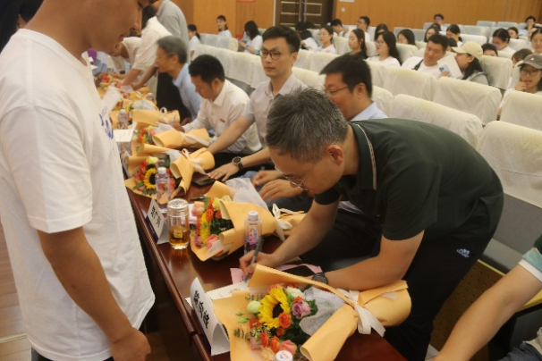 十三水在线 “五好导学”团队学生代表通过诗朗诵《导师我想对您说》,表达了他们对老师的感恩与祝福,并为现场的领导、老师送上鲜花。老师们为新生的研途期许卡片写上寄语,这也预示着崭新的校园生活正式开启。
