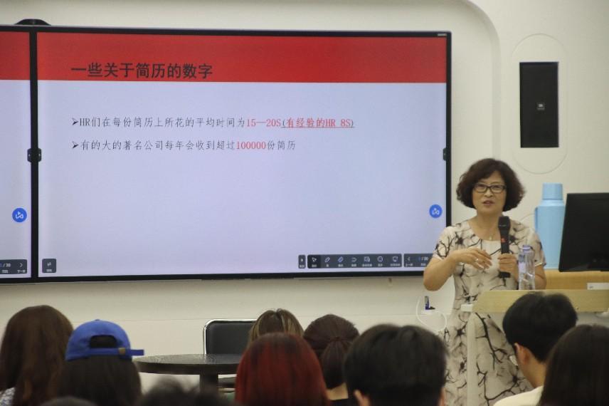 张月铭从简历版面设计、内容撰写、措辞用字等方面,对求职简历制作进行详细介绍。她指出,制作高水准简历,目的在于为自己争取到面试机会,所以在简历制作中要自我定位清晰,让简历内容言之有物、充实有料,从而使自己的简历成为“高端定制产品”。她指出以下要点:排版干净简洁,美观大方;少做无效信息,重点突出,避免冗长;不能千篇一律,简历要凸显自身专业度,给HR留下更深刻的印象。