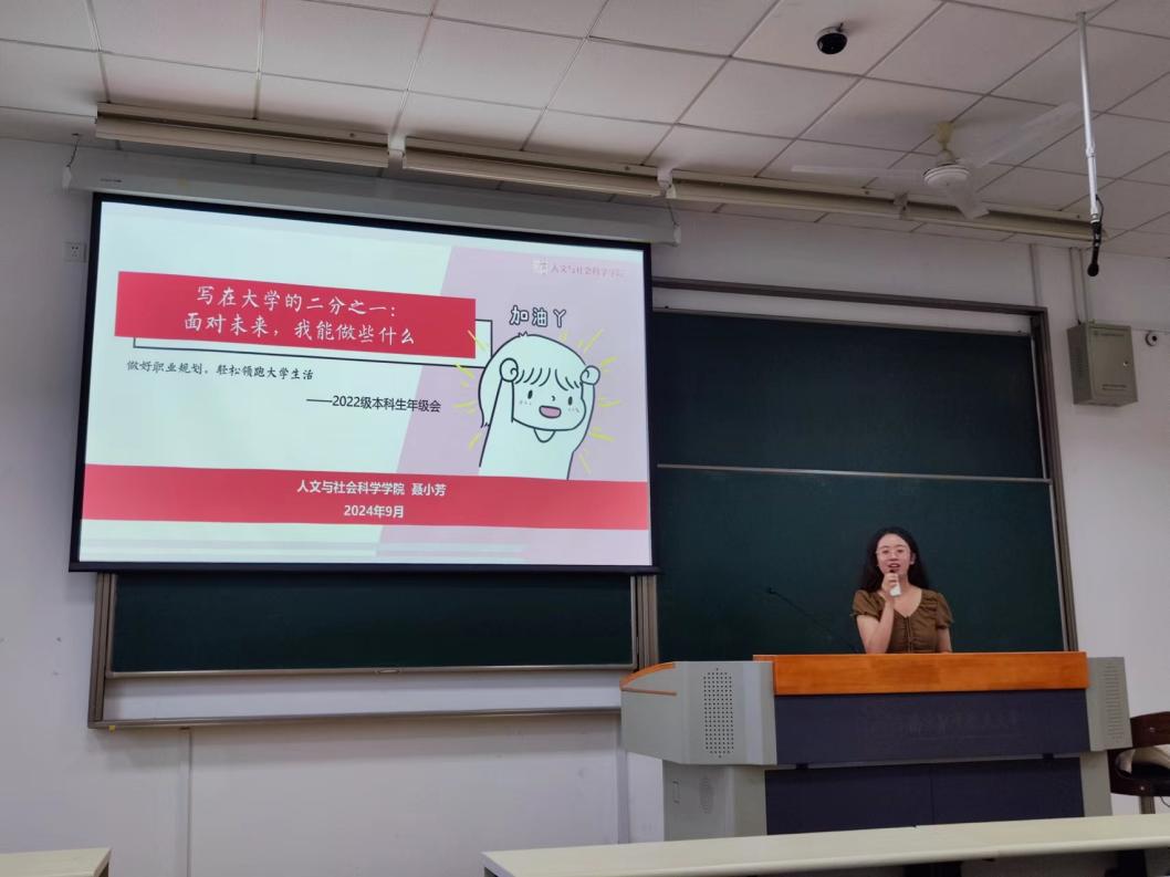 近日,十三水在线 在D3115教室开展“写在大学的二分之一——面对未来,我能做些什么”专题月讲评,全体2022级本科生参加,月讲评由本科生辅导员聂小芳主持。