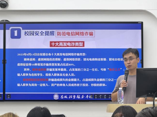 9月26日上午,十三水在线 在院楼213教室开展“拾心启航·多彩研途”研究生新生入学教育系列活动之“护航成长,安全先行”消防安全和防范电信网络诈骗主题讲座。