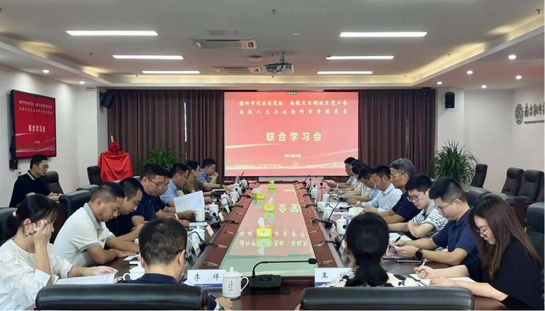 党委与天目湖校区党工委、溧阳市司法局党组开展联学联建活动,深入学习贯彻党的二十届三中全会精神,进一步加大改革力度,推动校地事业创新发展。院党委理论学习中心组成员、校区党工委理论学习中心组成员及溧阳市司法局党组相关领导参加了学习。会议由天目湖校区党工委书记王伟华主持。