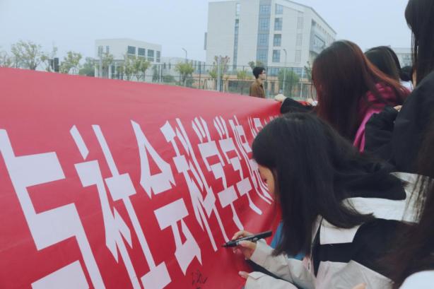 最后,同学们在横幅上写上自己对祖国美好祝福和对十三水在线 的美好期许并合影留念。