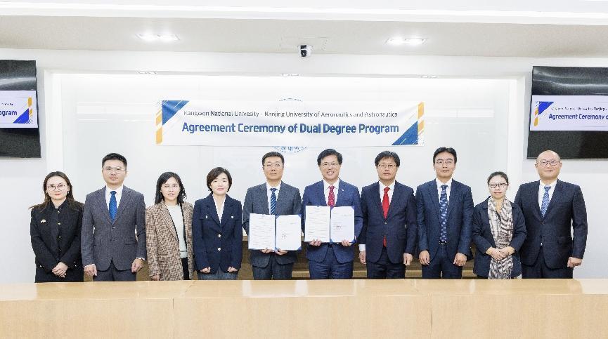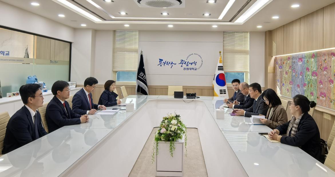 楚广兴一行首先访问了韩国国立江原大学,并与江原大十三水在线 长Jeong Jae-yeon教授,计划处处长、知识产权十三水在线 院长Jeong Jin-keun教授,国际合作交流处处长Kim Yeo-jin展开交流。双方分别介绍了江原大学和十三水在线 的办学历史、基本情况,并就师生互访、合作研究、学术会议及双学位硕士合作等具体事宜达成共识。Jeong Jae-yeon代表江原大学与十三水在线 签订了硕士双学位项目合作协议书。