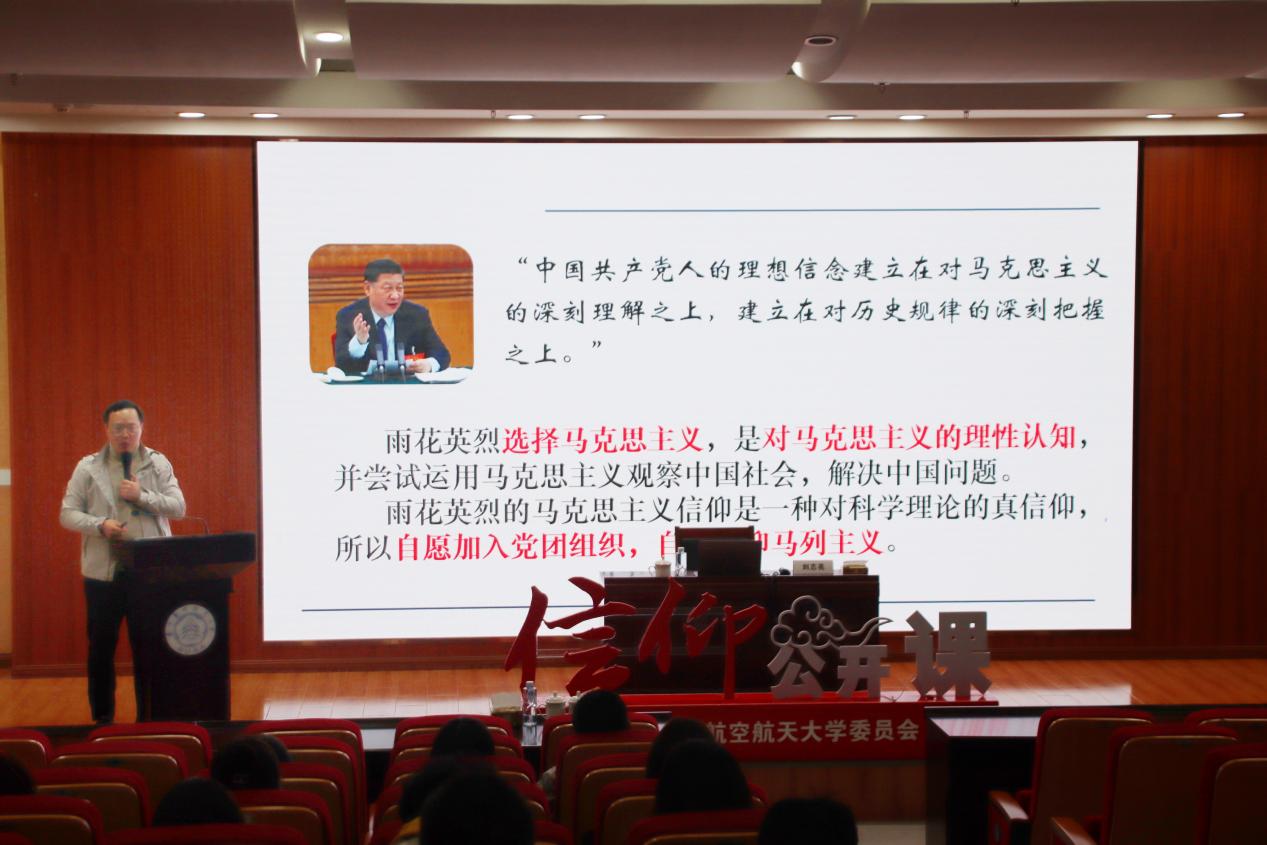 刘志亮结合自己从事雨花英烈事迹与精神研究的工作实践,以大量真实史料,阐述了“雨花台”的前世今生、雨花英烈群体画像与特征、雨花英烈革命精神核心内涵及当代价值。他用鲜活的事例、感人的故事,让在场同学们深刻认识到,雨花英烈用生命诠释了忠于信仰、对党忠诚永远是一个共产党人最纯真的政治底色。