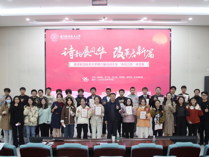 11月22日,“诗韵展风华,改革启新篇”南京航空航天大学第六届诗词大会“诗词之夜”体验赛在天目湖校区牧星楼T2108报告厅顺利举行。