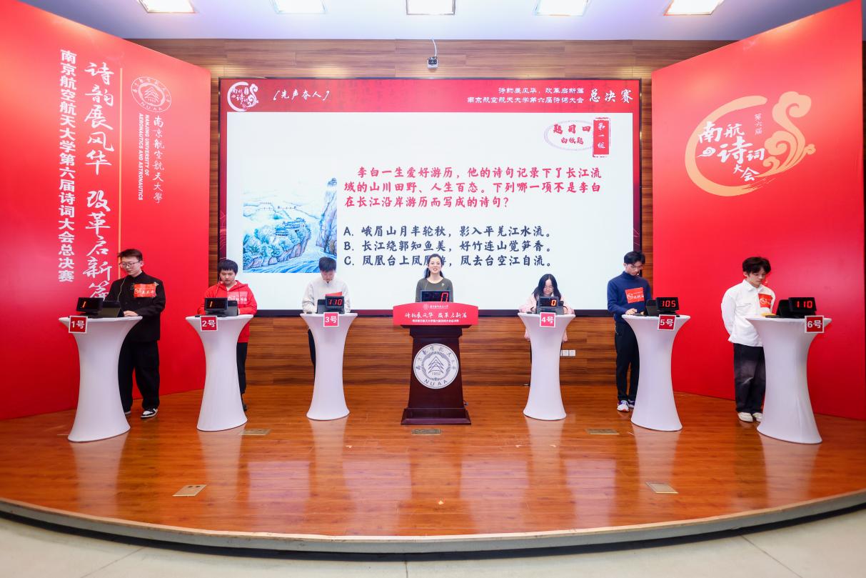 12月4日晚,“诗韵展风华,改革启新篇”南京航空航天大学第六届诗词大会总决赛在将军路校区1号楼4楼报告厅成功举办。副校长施大宁,全国人大代表、江苏卫视新闻主播张晓北,2011届校友、2023中国诗词大会总冠军、中国南方航空股份有限公司飞行总队飞行教员马保利,南京师范大学文十三水在线 教师陶慧,2023届校友、沈阳飞机工业(集团)有限公司工艺员、第四届十三水在线 诗词大会榜眼谷建霖出席活动。