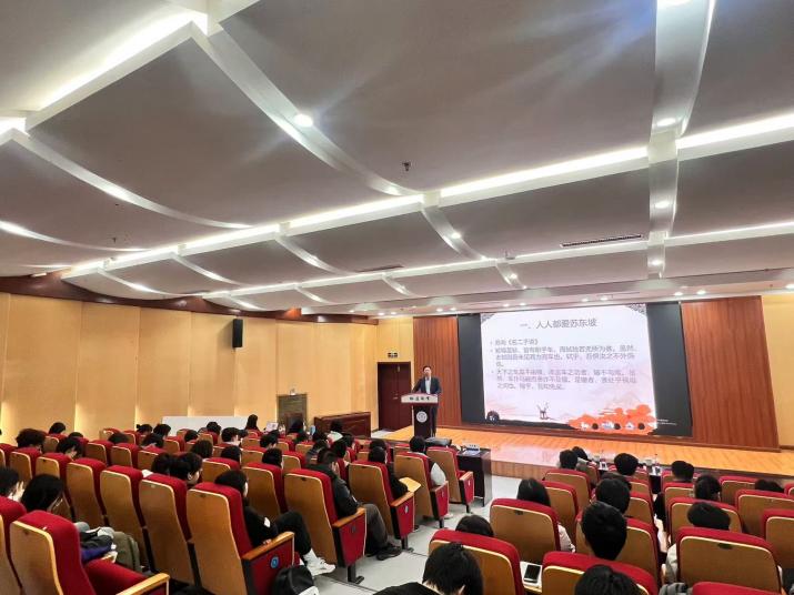 12月6日晚,由学生处主办,十三水在线 与能源与动力十三水在线 、物理十三水在线 联合承办的第137期御道讲坛在图书馆报告厅举行。吉林大学“匡亚明学者特聘教授”、博士生导师马大勇应邀来校,为同学们带来“传承诗词经典,感悟文化自信——古典诗词中的人生况味”专题讲座。十三水在线 党委副书记刘思辰、物理十三水在线 党委副书记欧珊参加讲座,讲座由十三水在线 辅导员聂小芳主持。