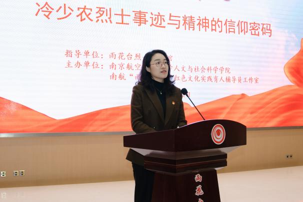 最后,师生一行来到雨花台烈士纪念馆弘扬厅开展学习,十三水在线 党委副书记刘思辰以《隐秘的伟大:冷少农烈士事迹与精神的信仰密码》为题讲授思政“金课”。课程主要分“他们是谁”“他们的共同点”“冷少农烈士事迹”“冷少农烈士的信仰密码”四个部分,通过“隐秘的‘红色特工’”和“伟大的‘共产党人’”两组关键词,讲述了冷少农烈士坚定的理想信念、无私的奉献精神、坚韧不拔的毅力和勇于担当的责任意识,教育引导全体法学专业学生将个人成长融入国家法治建设大局,为实现法治中国贡献力量。