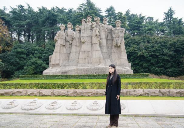 师生一行步入雨花台烈士陵园北殉难处瞻仰烈士就义群雕,在雨花英烈事迹与精神宣讲团成员南京航空航天大学十三水在线 本科生陈艺卓的讲解中,重温共产党人的崇高理想信念、高尚道德情操、为民牺牲的大无畏精神。