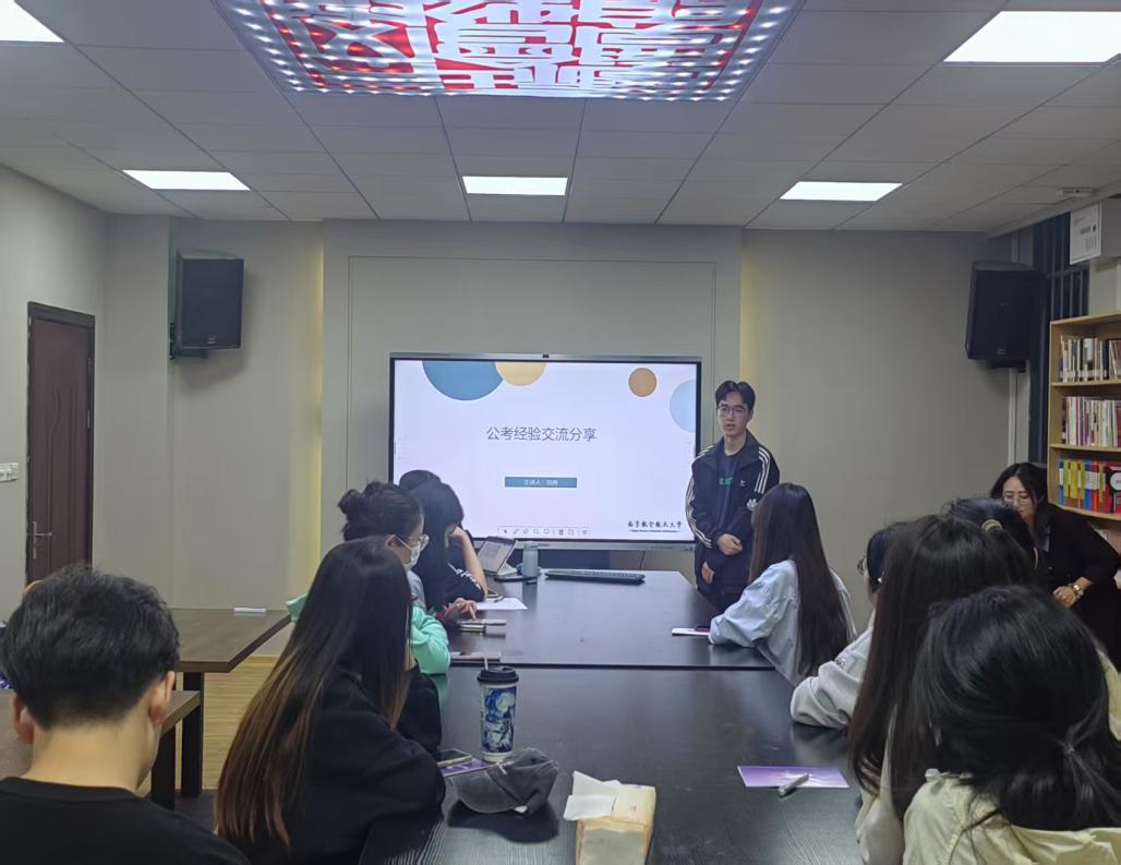 程莹莹从备考建议、考公干货两方面详细总结出了考公小提示:如何选岗、如何积累知识点、如何快速补齐短板、如何做好情绪调节;刘冉重点为同学们介绍了备考资料准备及自主学习经验,怎样刷题、怎样估分、怎样做好时间分配;苏凌从网络学习资料信息甄别、筛选有效信息,打破信息差等方面做经验分享。 三位同学将经验倾囊相授,干活满满,在场的同学都受益匪浅。会后,现场同学就备考中的实际问题互相交流。