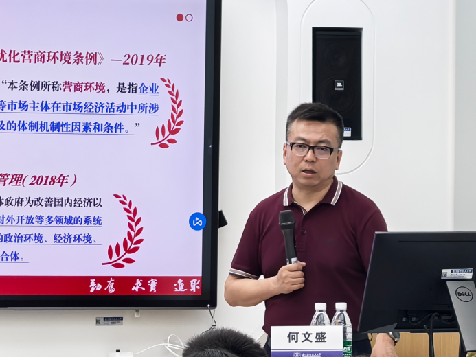 何文盛教授以《优化营商环境的若干思考:基于甘肃的案例》为题,立足新时代营商环境优化转型需求,系统阐释营商环境建设的制度创新与高质量发展问题,重点探讨法治保障与评估体系创新的实践路径。