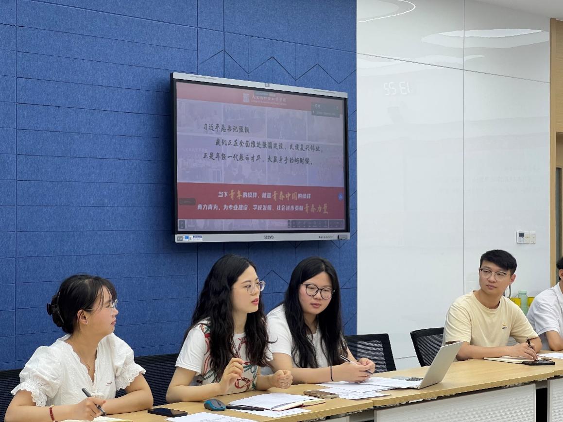 在支部工作交流环节中,本科生团支书代表叶子田田介绍了支部开展一支部一项目“法与童行”的创新实践和丰硕成果,为其他支部提供了可借鉴的经验与思路。研究生团支书代表安洪双以“勇担青春使命,建造活力支部”为题,分享了支部开展理论学习的经验。