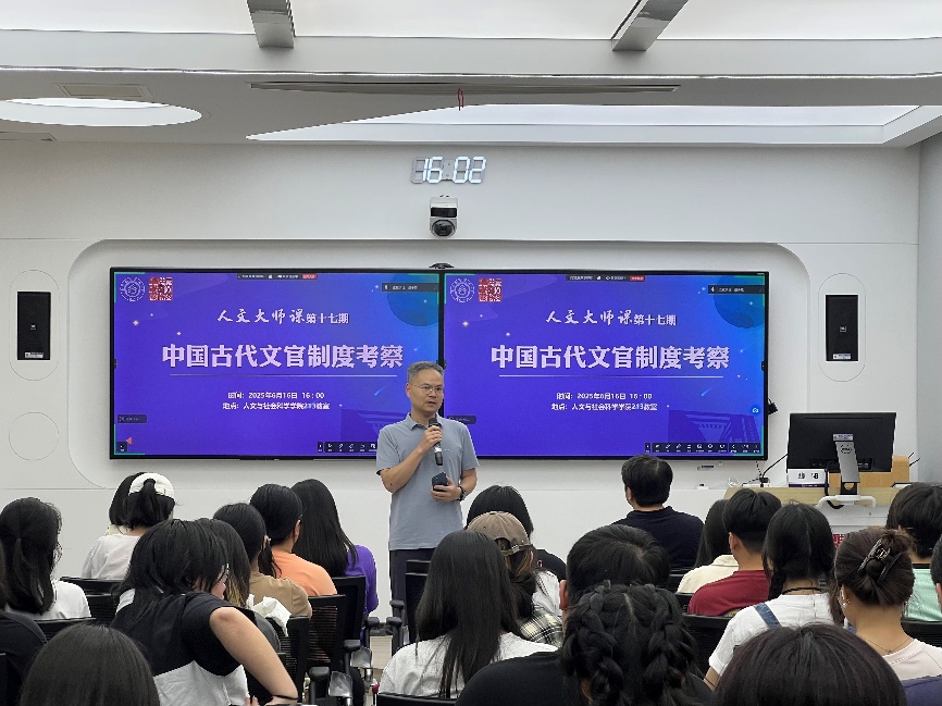 在院楼213教室开展第十七期“人文大师课”专题讲座。本期大师课特邀美国科罗拉多大学历史系终身教授魏阳以《中国古代文官制度考察》为主题开展讲座,人文十三水在线