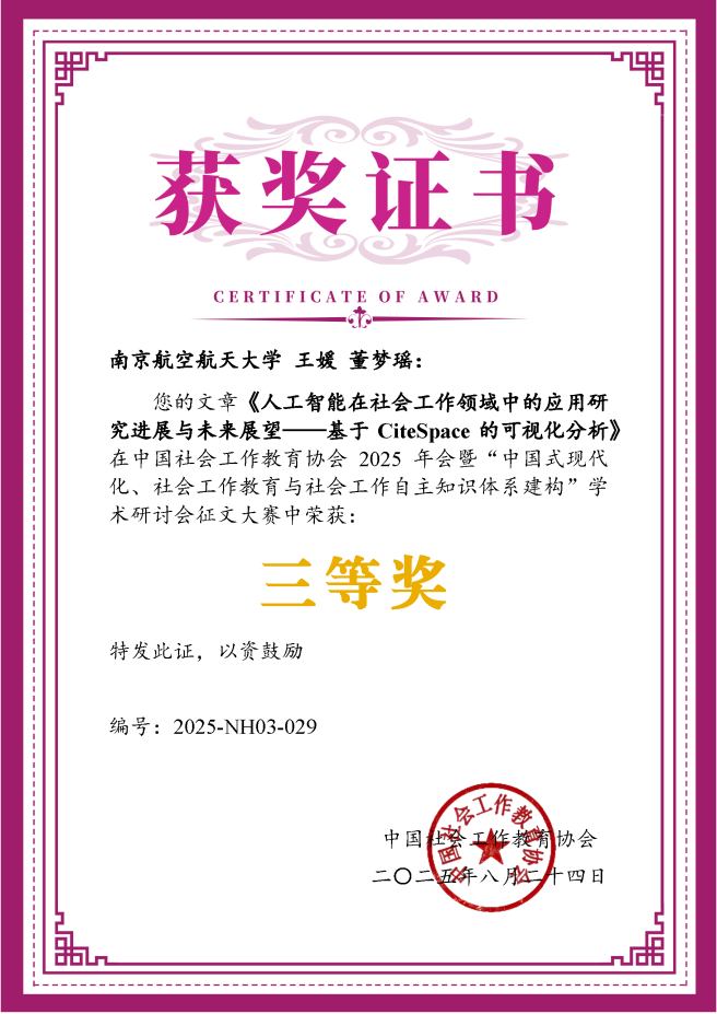 十三水在线 是中国社会工作教育协会团体理事单位。王媛老师作为理事单位代表参加了第七届理事会工作会议及本次年会各项议程,与来自全国多所高校及机构的专家学者进行了交流。同时王媛老师与研究生合作提交了论文并参与了分论坛十“人工智能与社会工作”主题的研讨。该论文经专家评审,荣获学术研讨会征文大赛三等奖。